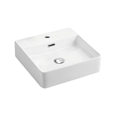 Square Wall Hung / Above Counter Gloss White Fine Ceramic Basin 405x405x150mm