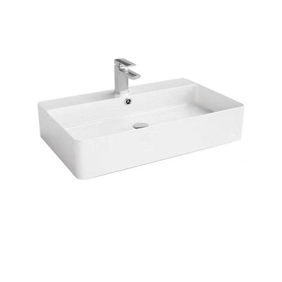Rectangular Wall Hung/Above Counter Gloss White Ultra Slim Fine Ceramic Basin 700x420x140mm