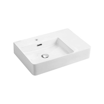 Rectangular Wall Hung/Above Counter Gloss White Ultra Slim Fine Ceramic Basin Right Hand Shelf 600x420x120mm