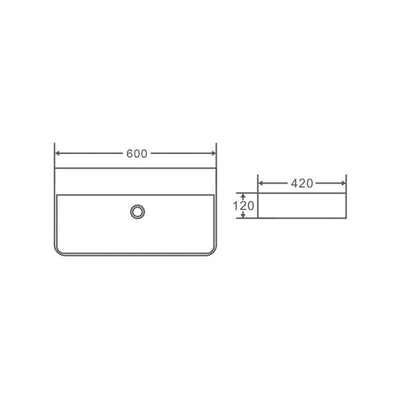 Rectangular Wall Hung/Above Counter Gloss White Ultra Slim Fine Ceramic Basin 600x420x135mm