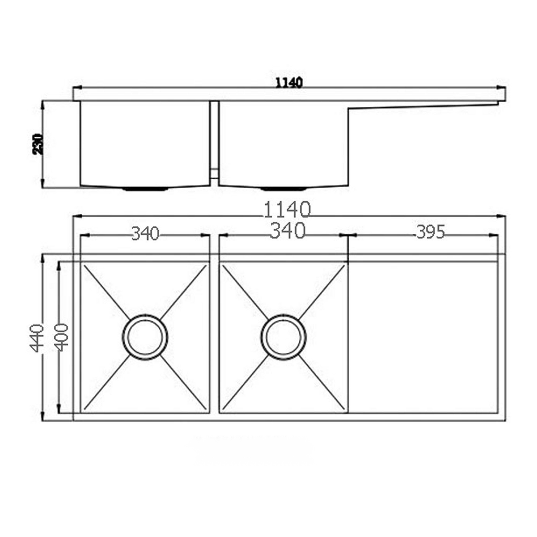 1140(L) x 440(W) x 230(H) mm