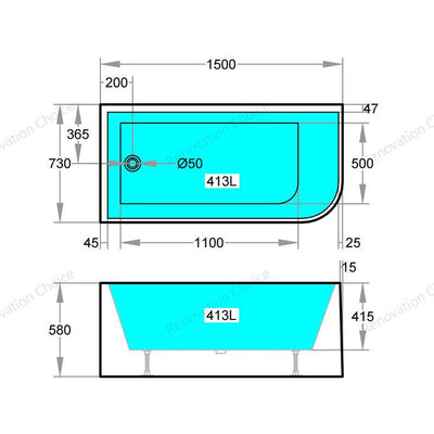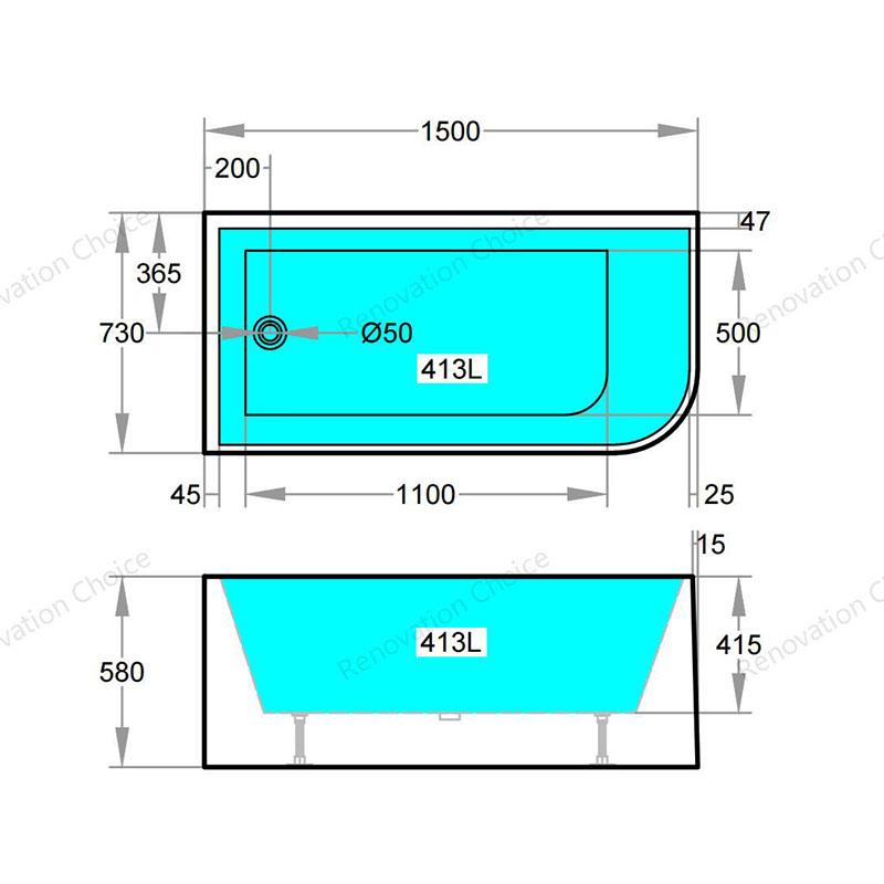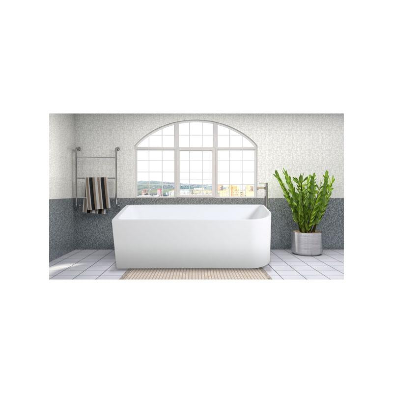 Left Corner Acrylic Gloss White Back To Wall Bathtub Without Overflow 580mm Height
