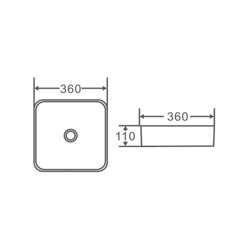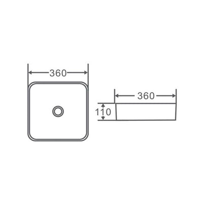 Square Above Counter Matte Grey Fine Ceramic Basin 360x360x115mm