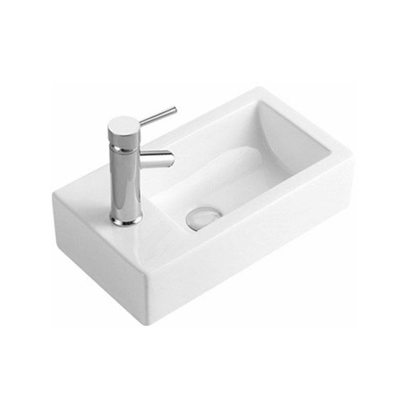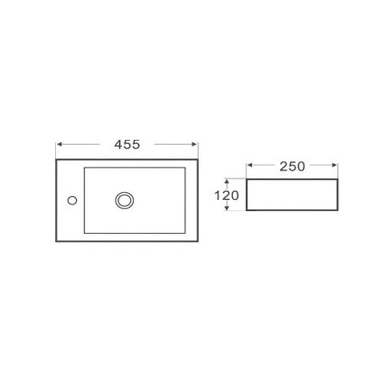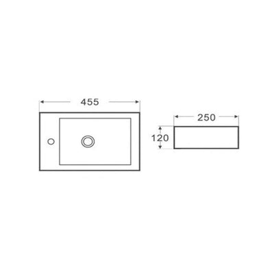 Rectangular Wall Hung Gloss White Fine Ceramic Right Hand Basin 455x250x120mm
