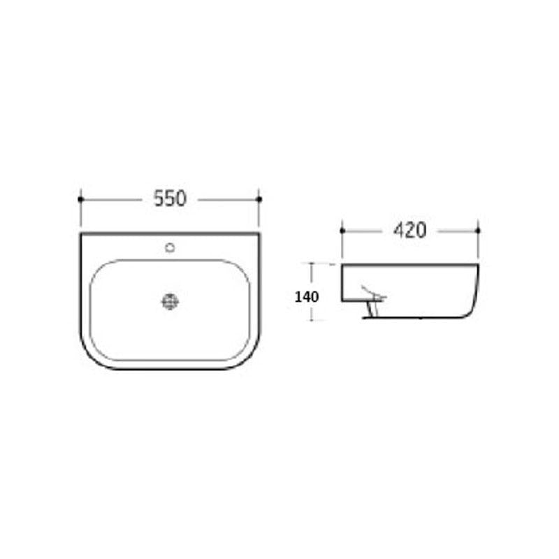 Wall Hung Gloss White Fine Ceramic Basin 550x420x140mm