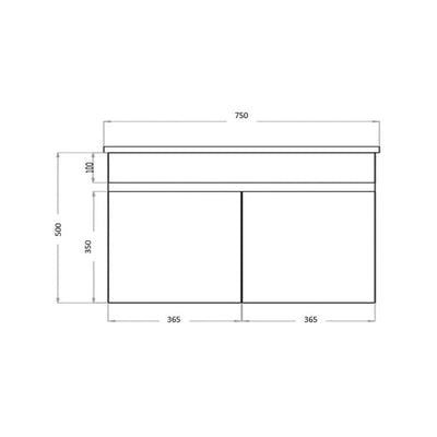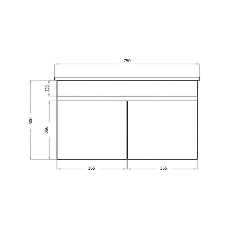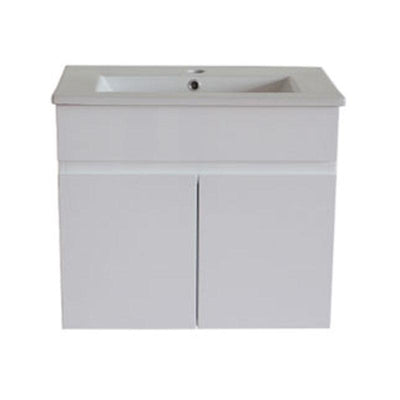 Bathroom Wall Hung Slim White Polyurethane MDF Vanity With Thin Ceramic Top 750x360x500mm