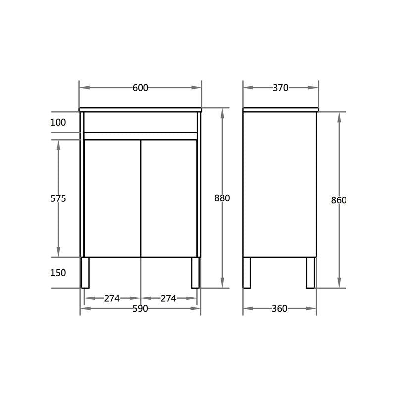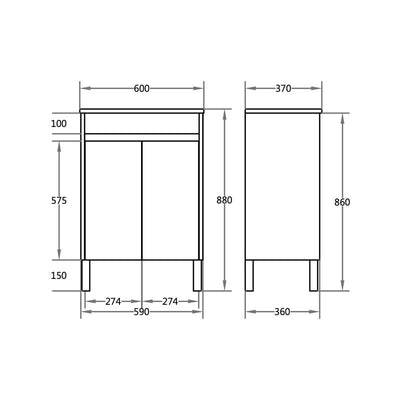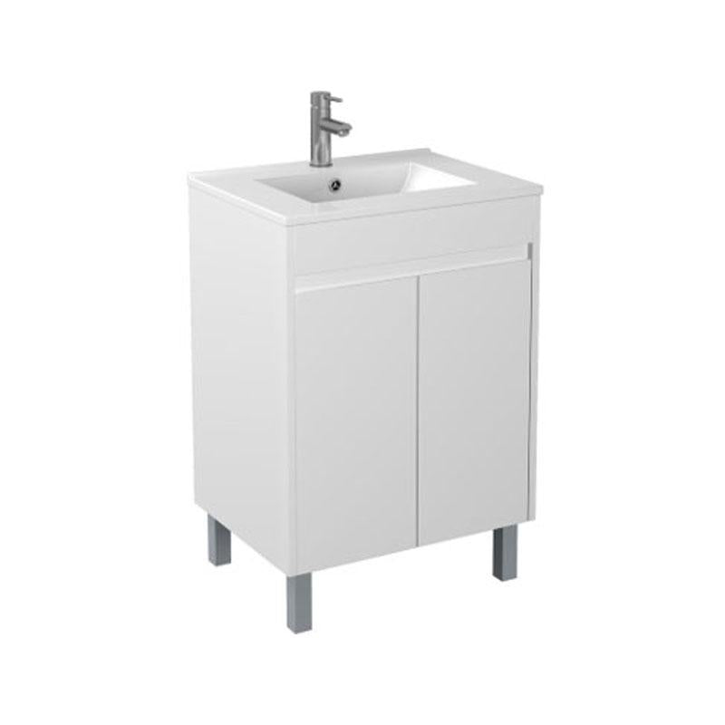 Bathroom Freestanding White Polyurethane PVC Compact Cabinet With Poly Marble Top 600x365x880mm