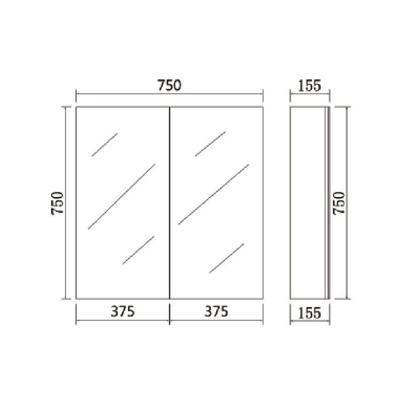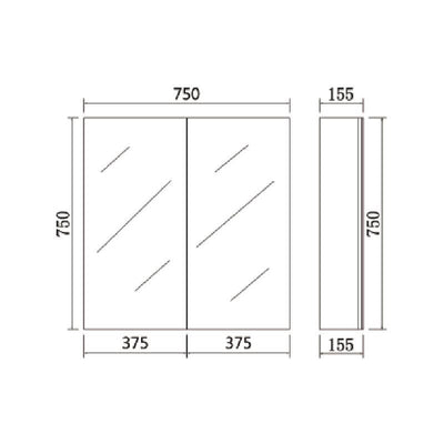 Bathroom Pencil edge PVC Polyurethane White Shaving cabinet Double Doors 750*750*155mm
